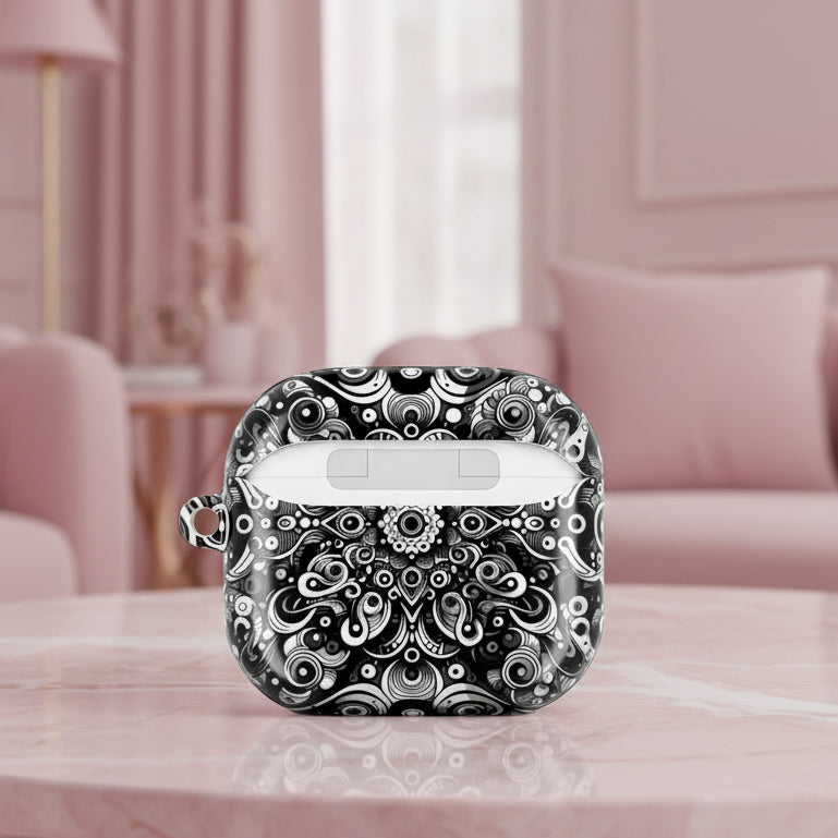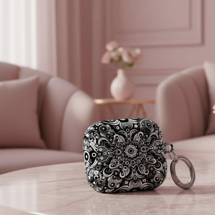 Trage jeden Tag ein Stück Kunst – und ein bisschen Positivität – bei dir. Das coole AirPod-Case in Schwarz-Weiß von Syutet hüllt deine AirPods in ein faszinierendes Mandala-Design mit filigranen Wirbeln, kräftigen Kontrasten und skulpturalen Details, die das Licht aus jedem Winkel einfangen. Dieses hypnotische Muster strahlt Ruhe, Konzentration und positive Energie aus und spiegelt Syutets Überzeugung wider, dass Design deinen Tag verschönern und den kleinen Momenten Bedeutung verleihen sollte. Leicht und glänzend, trägt sich das Case mühelos an deinem Schlüsselbund, in deiner Hosentasche oder befestigt an deiner Tasche mit dem mitgelieferten Karabiner. Die robuste Polycarbonat-Schale schützt vor Kratzern und leichten Stößen, während die offene Unterseite das Laden – kabellos oder mit Kabel – vereinfacht. Perfekt für alle, die den monochromen Stil lieben, Kreative, Pendler und alle, die cooles, durchdachtes Design schätzen: Dieses Case verwandelt ein funktionales Accessoire in ein tragbares Kunstwerk.