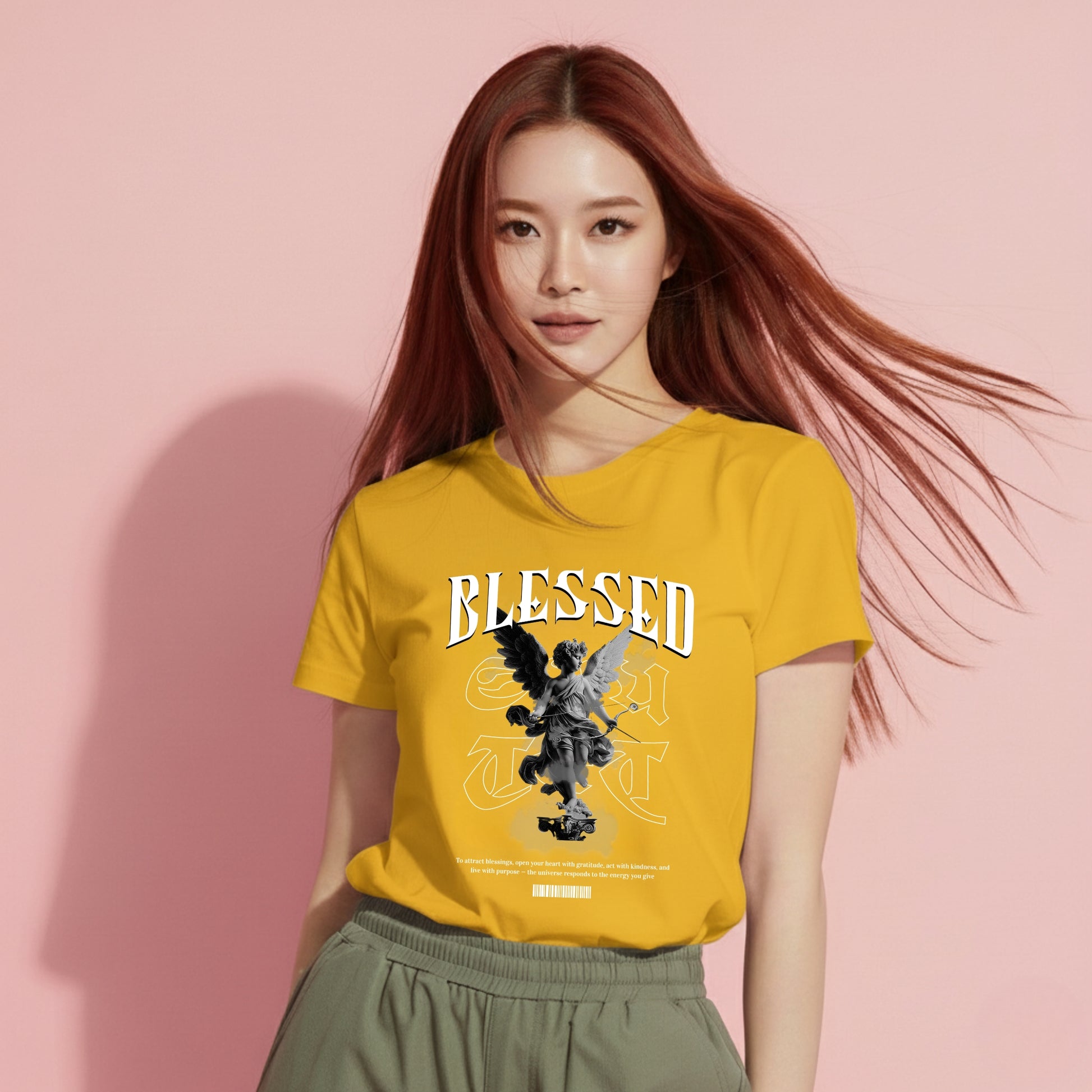 Wear your gratitude with purpose. Our Orange-Yellow Colors Blessed T-Shirt features the inspiring quote:
